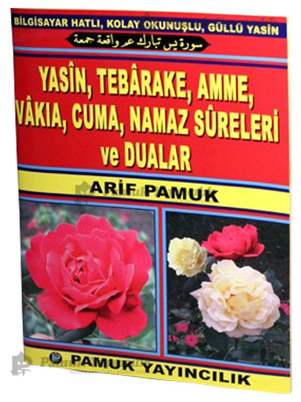 Yasin. Tebareke. Amme. Vakıa. Cuma surelerinin ve onlarca duanın Arapça metinlerinin yanı sıra Latince okunuşları bu eserde bulunmaktadır. Eser dört renkli ve şamua kağıda basılmıştır.